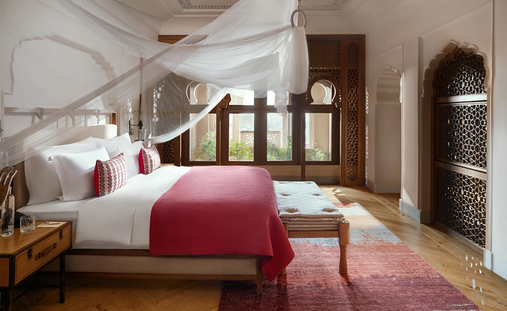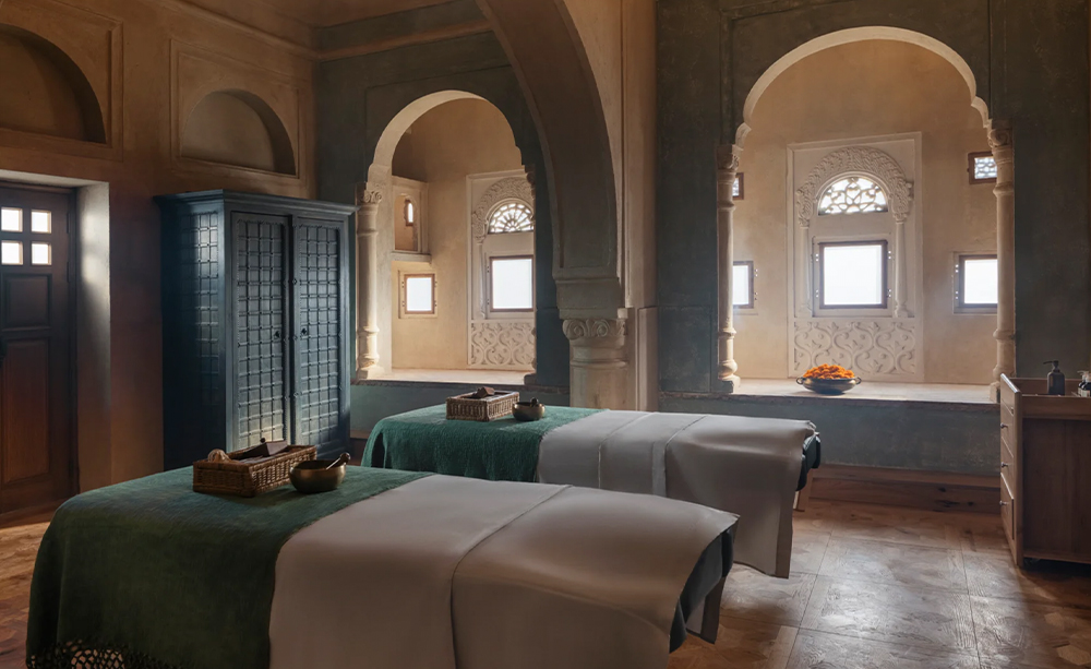 Formerly a 700-year old royal fort, the Six Senses Fort Barwara has been meticulously restored into a sanctuary of wellness. The property’s luxury suites seamlessly blend heritage architecture with modern comforts. Outside your room, you’ll find hand-carved stone arcades, peaceful courtyards, refreshing swimming pools, a 30,000 square-foot spa, and magical views of the surrounding villages and lake.